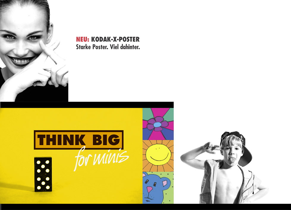 Bilder im Fotogeschäft printen lassen, ist zu über 80 % Frauensache. Als Hingucker, um eine Promotion für eine Bilderlinie erfolgreich zu lancieren, eignen sich eher Babyfotos oder eben das Bild links. Kommunikation im Handel und am POS muß schnell funktionieren und lauter sein, als Imagewerbung für ein Unternehmen. Die Kampagne kam in mehreren Ländern Europas zum Tragen.