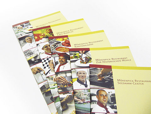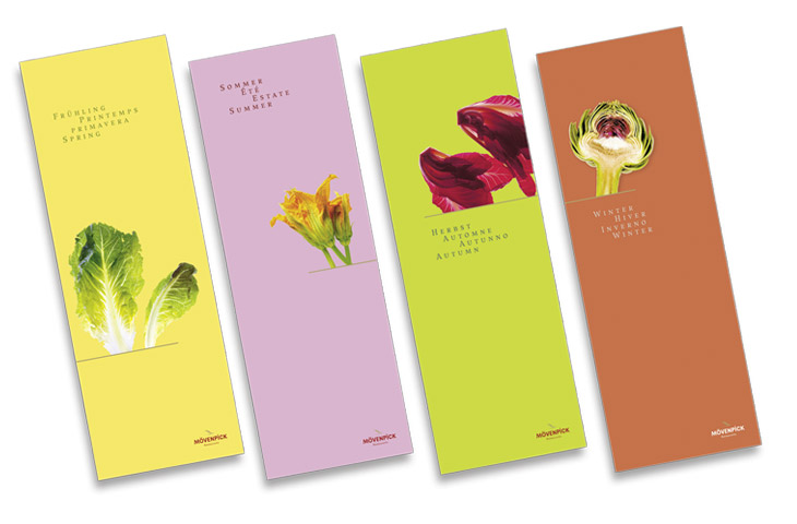 Das neue Speisekartensystem ist ein fein abgestuftes Instrumentarium für viele Gelegenheiten und Anlässe. Die einzelnen Karten zeigen jetzt in gedruckter Form das, was an außergewöhnlich guter Qualität aus der Mövenpick Küche kommt. Das Bild der Restaurants schließt sich damit immer mehr: raffiniert gekochte Gerichte, der besondere Service der Mitarbeiter im Restaurant und nun kommt die dazu passende Visitenkarte des Restaurants.